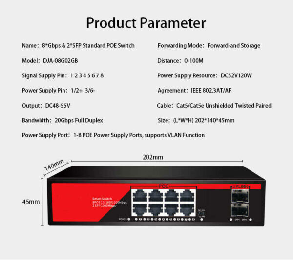 PoE Switch 8 Port được thiết kế nhỏ gọn, bền chắc và dễ dàng lắp đặt, phù hợp cho chúng ta sử dụng trong nhiều không gian, từ gia đình đến văn phòng.